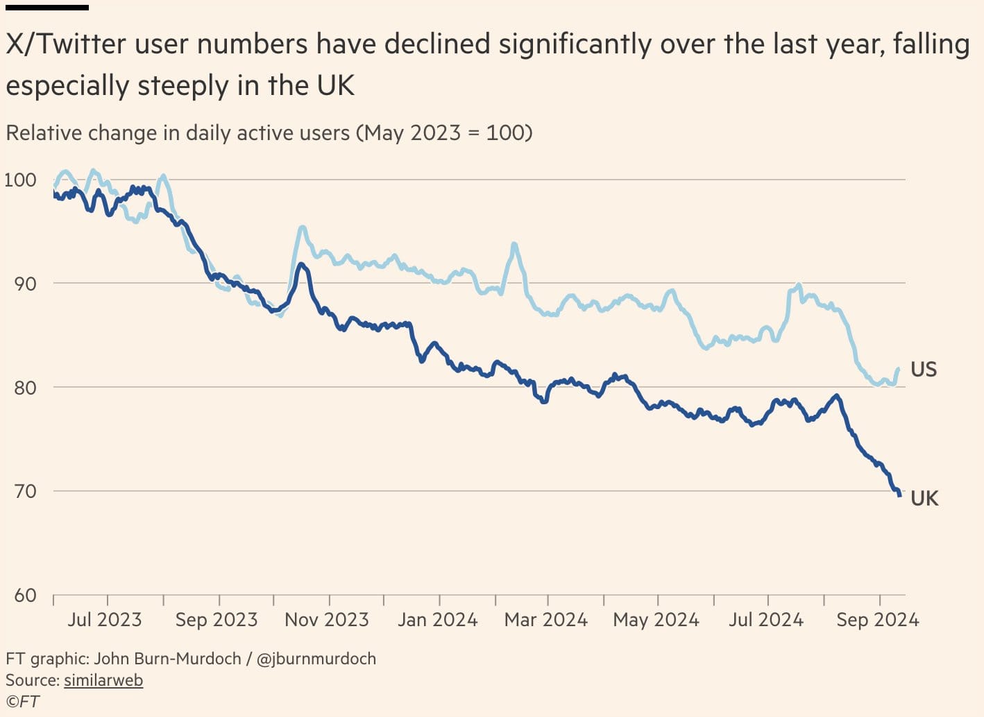 X is tanking, fast. It’s full of right-wing crazies and toxic trolls - not the kind of people you want to engage with. According to the FT, “X/Twitter user numbers in the UK [are] down by almost a third over the last year, and by almost a fifth in the US.” There’s plenty of evidence that smaller follower numbers give greater engagement on either the Fediverse or Bluesky.